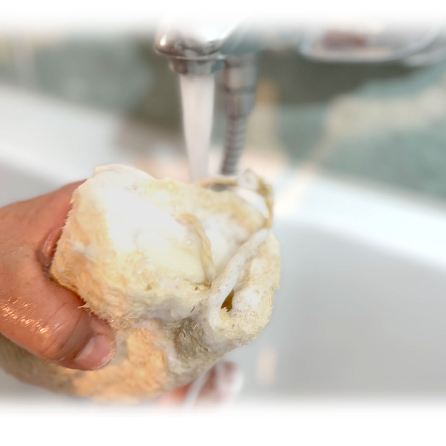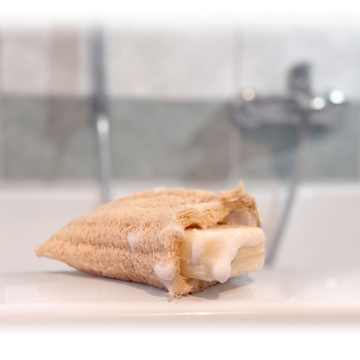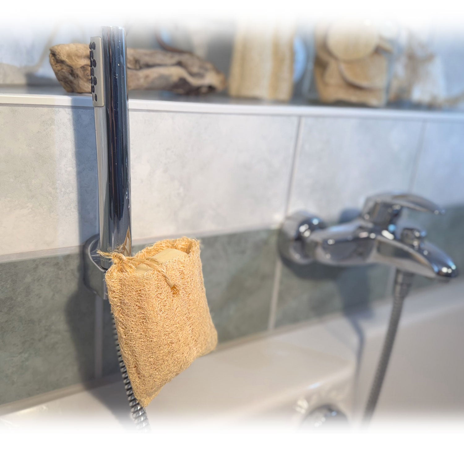 Your favorite soap deserves the best place – in the loofah soap pouch. It sits comfortably in your hand, prevents slipping, and creates a soft, creamy lather – for skin that feels clean and refreshed. It also helps your soap last longer. With its built-in hanging loop, it's easy to use and always within reach.